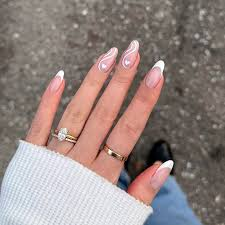Fresh white nails with a dreamy wave swirl – giving those perfect ocean current vibes.